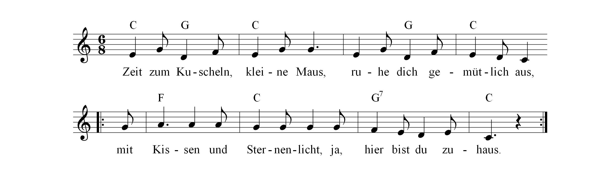 Lied 2: „Zeit zum Kuscheln, kleine Maus“
